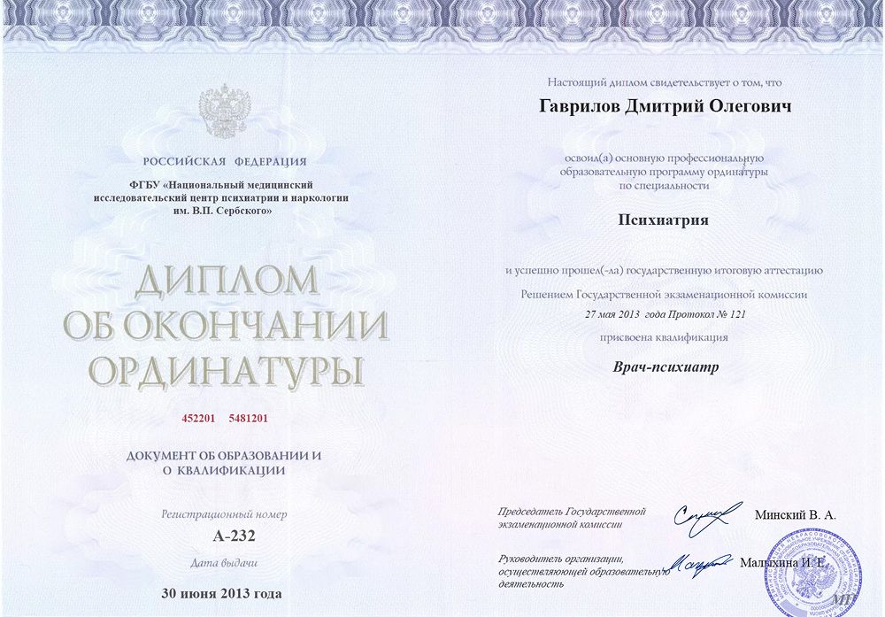 • Член Российского общества психиатров